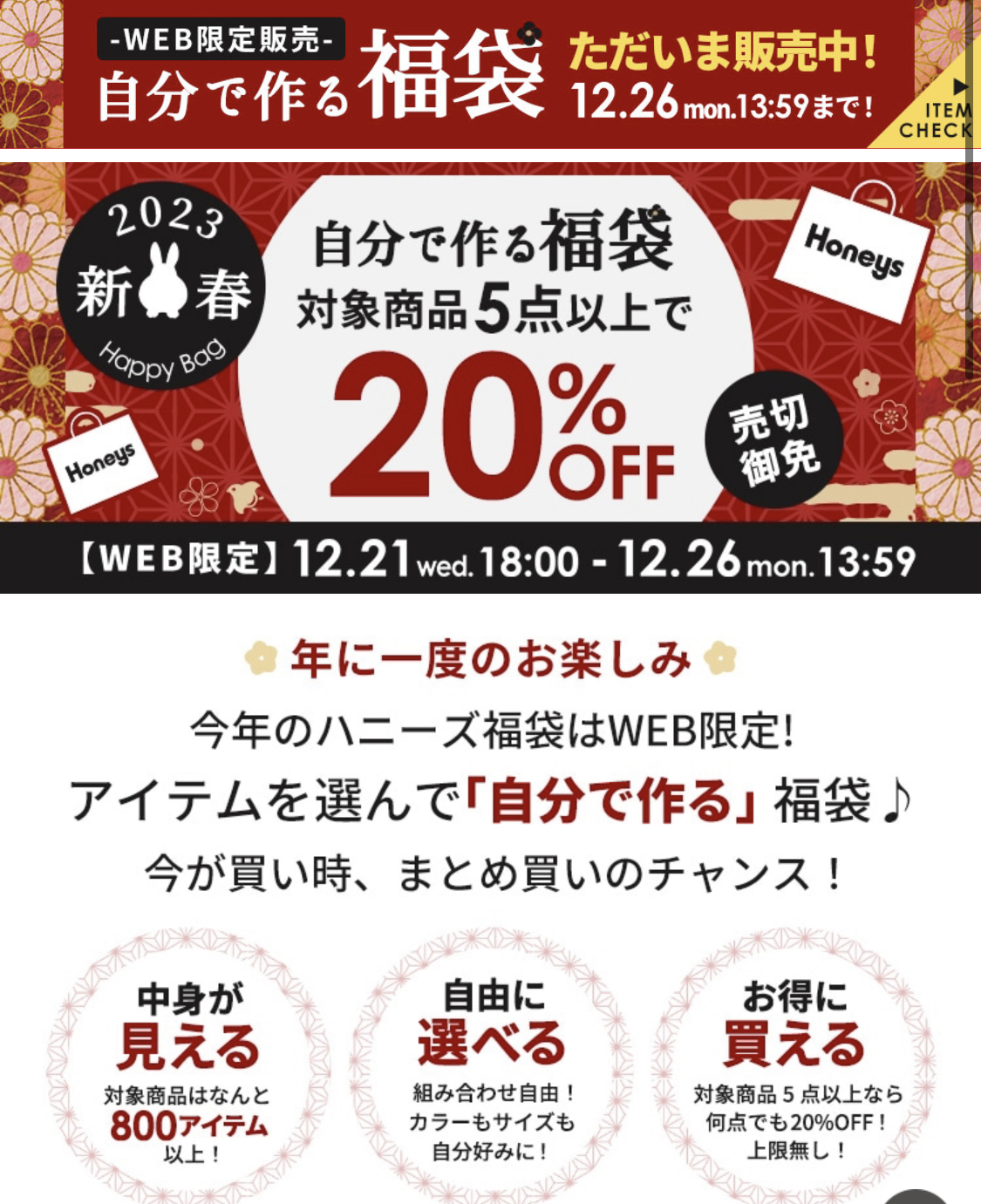 Honeys(ハニーズ)の福袋を